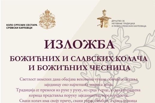 Коло српских сестара и Друштво за неговање традиција и развој Сремских Карловаца приређује 13. новембра изложбу божићних и славских колача и божићних чесница, на коју учешће треба пријавити најкасније до 11. новембра. Обрасци за пријаву могу се преузети у Саборној цркви, а пријављивање је могуће и мејлом на адресу: tradicijakarlovci@gmail.com